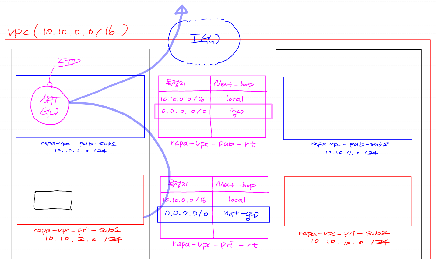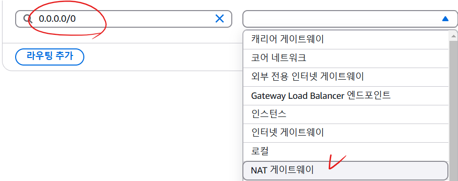 NAT-GW는 퍼블릭서브넷에 존재한다는점이다.