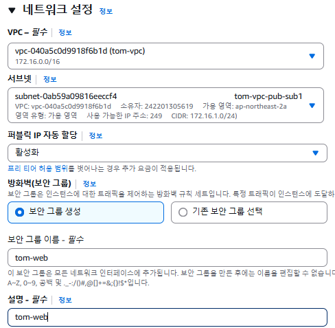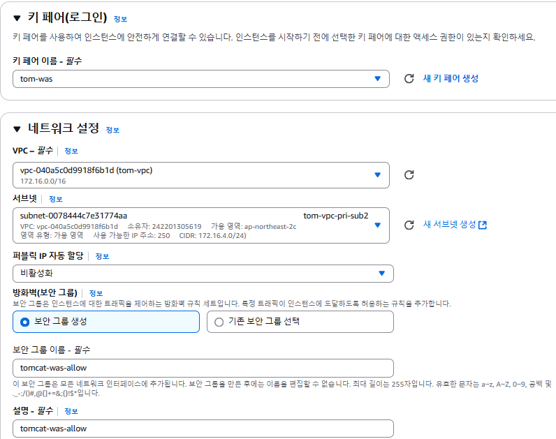 web은 tom-web.pem was는 tom-was.pem 키페어를 쓰도록하세요.