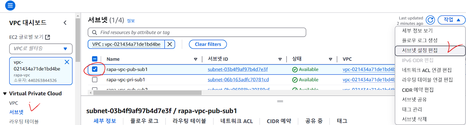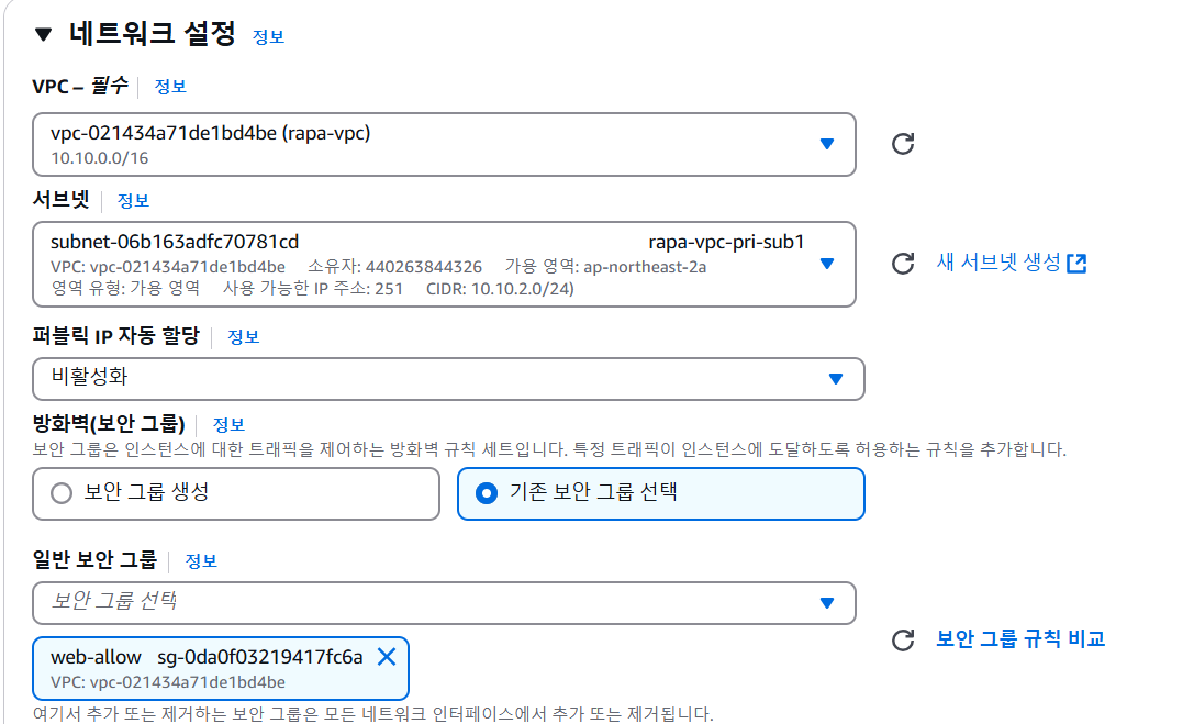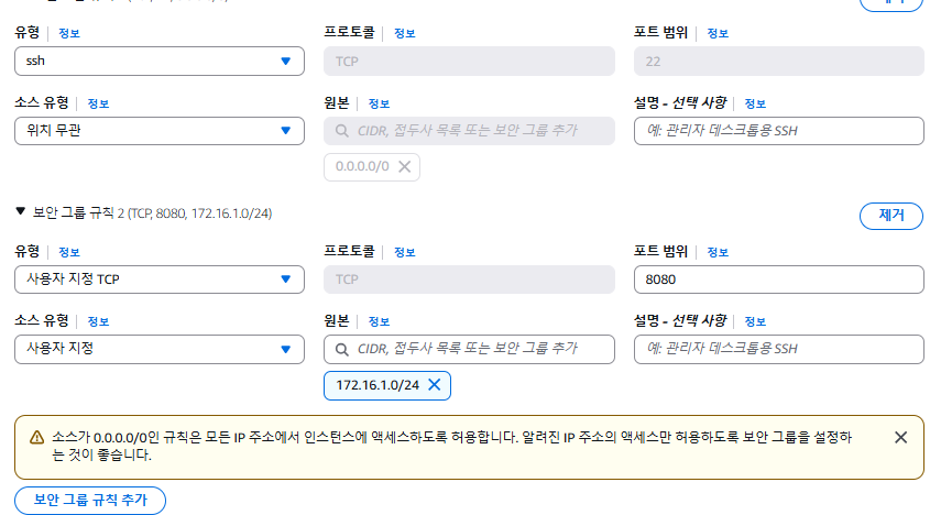 - web을 허용해줘야되기 때문에 사용자지정 a서브넷을 허용해줌