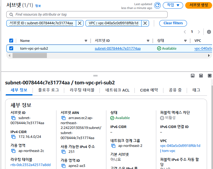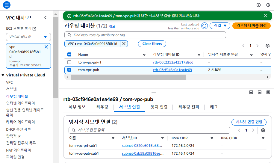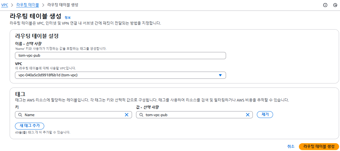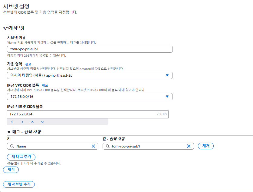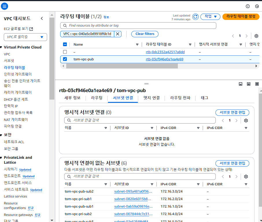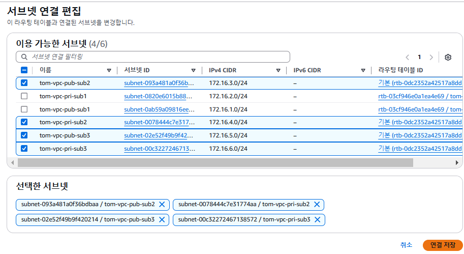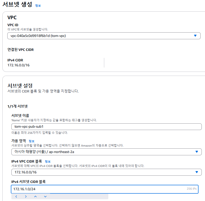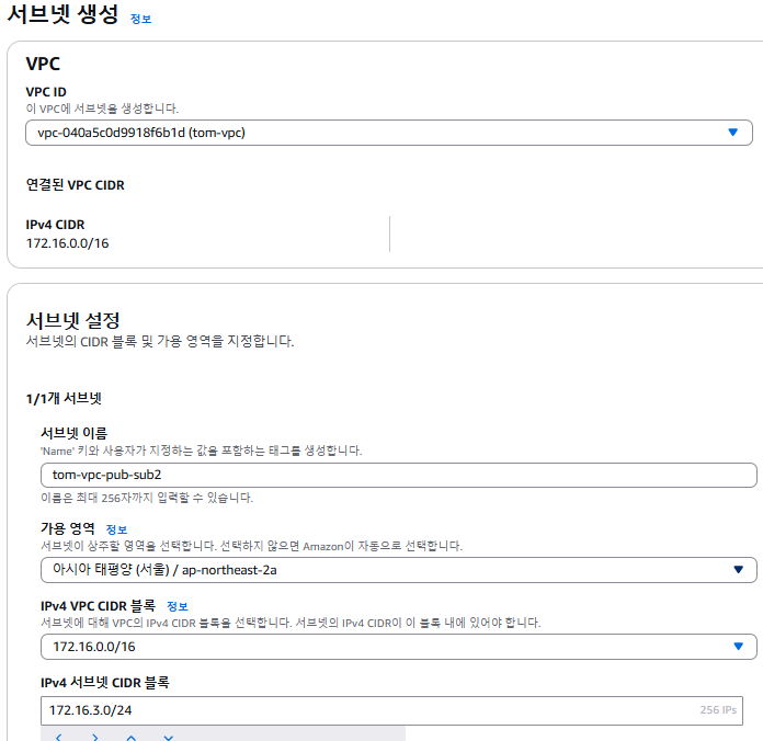 172.16.0.0 /16 대역에 tom-vpc를 생성하여web-was-db 3 tier를 구성해보세요.