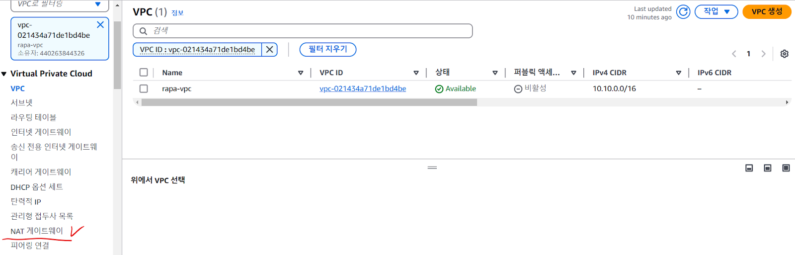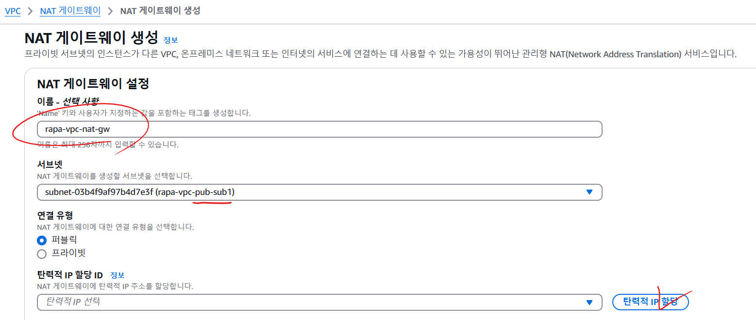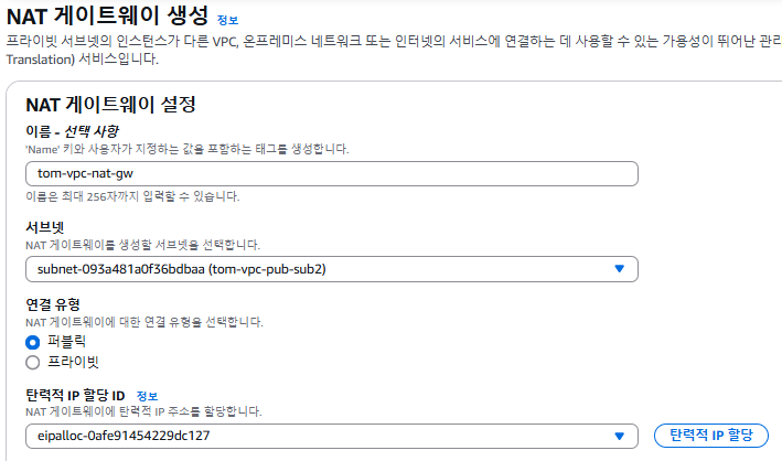 - NAT Gateway를 퍼블릭 서브넷에 배치함.