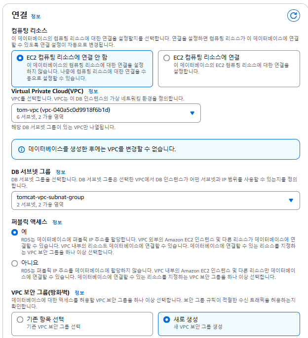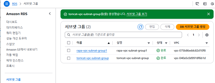 web서버는 퍼블릭 서브넷, was-db는 프라이빗 서브넷. was는 톰캣, db는 rds를 쓰세요.