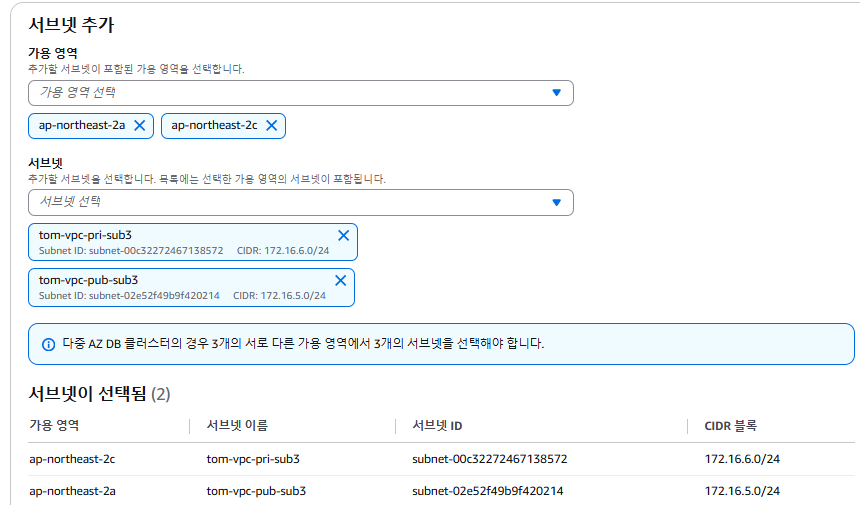 각 티어별로 서브넷을 생성하고 최소 두개의 가용영역(a,c)을 갖게 하세요.