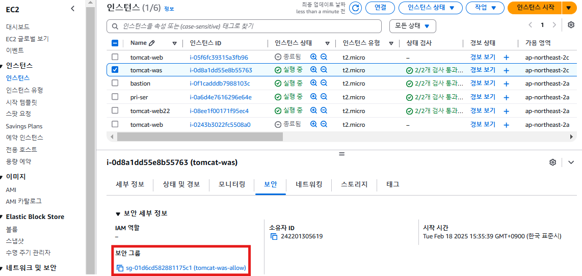 was 인스턴스는 web대역을 허용, db는 was 대역에서의 접속만 허용.